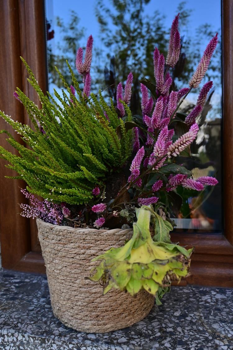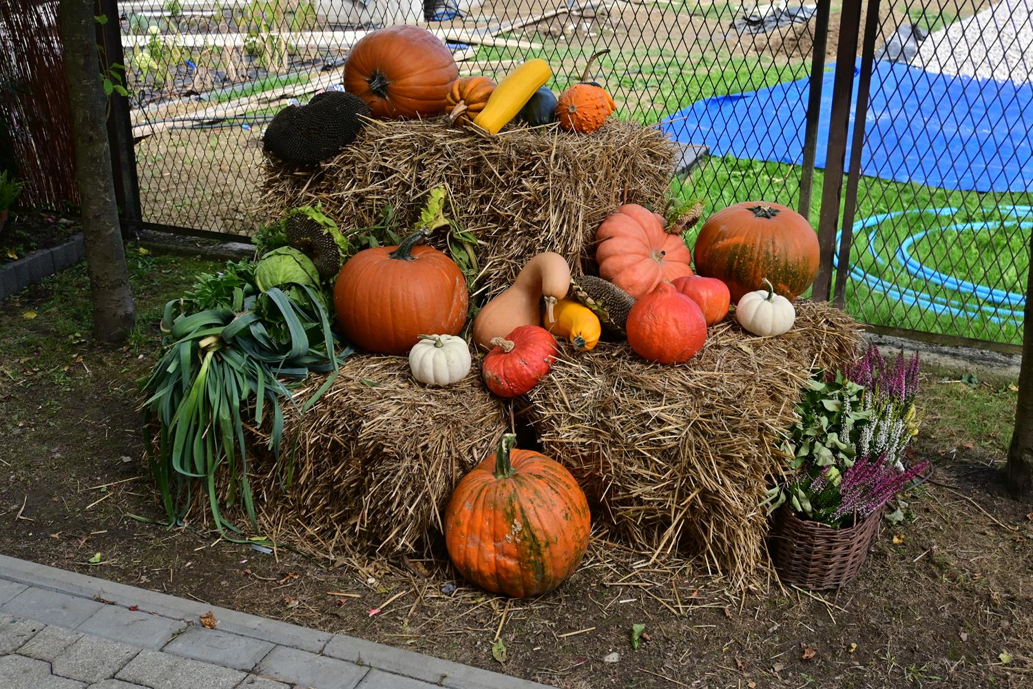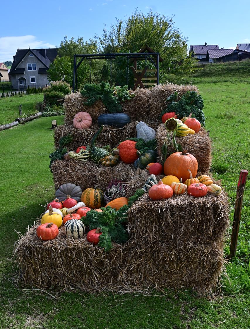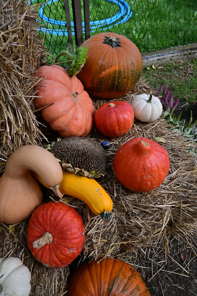 Pani Zofia nie tylko je uprawia – ona je celebruje. Każda dekoracja w ogrodzie była przemyślana: dynie poukładane na snopach słomy, ułożone w misach i koszach z traw i wrzosów. Byłam wzruszona, bo w tych aranżacjach było coś więcej niż estetyka – była dusza.