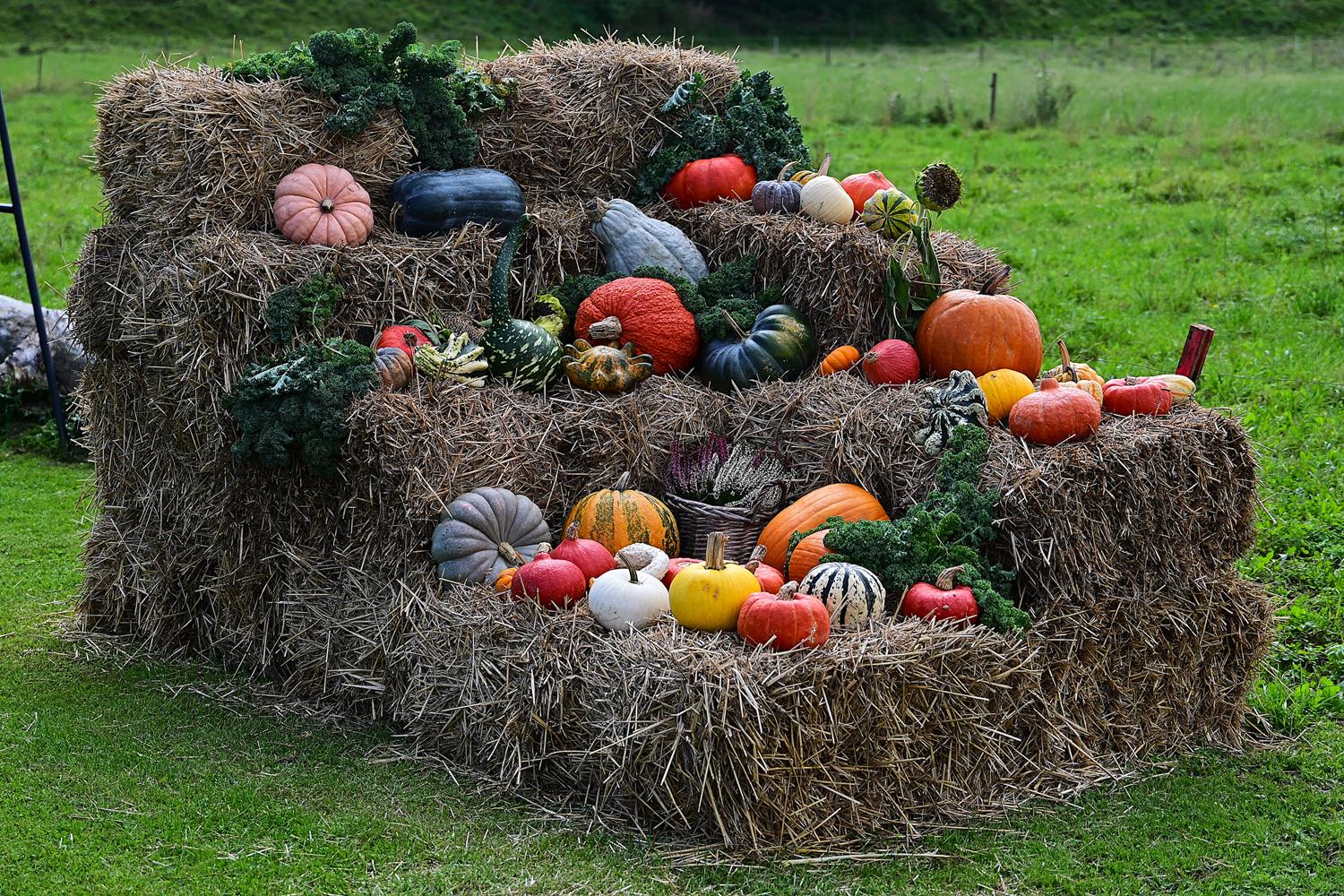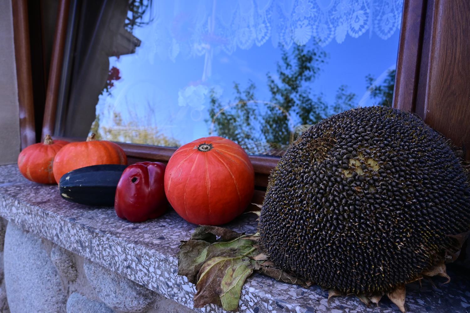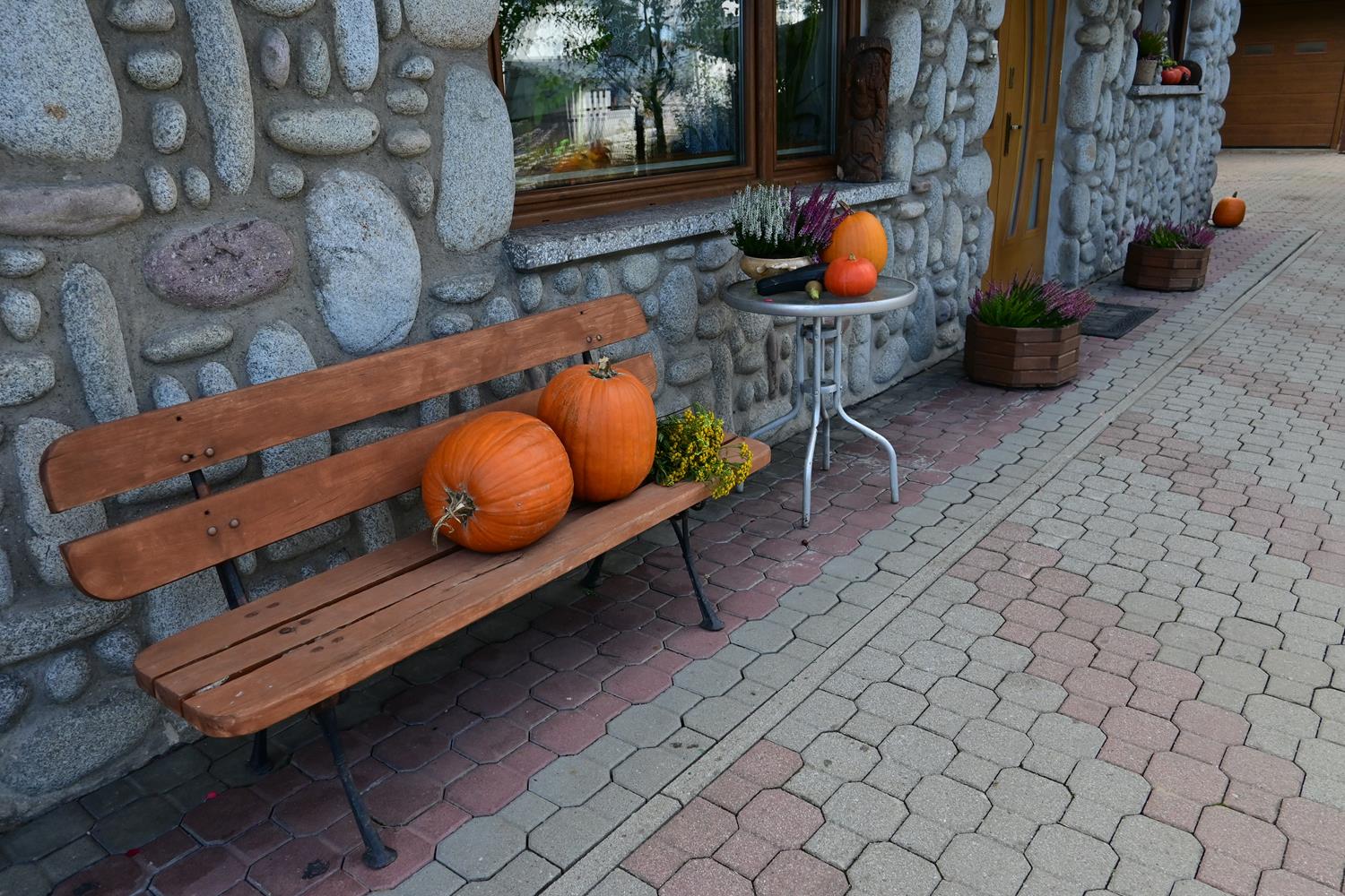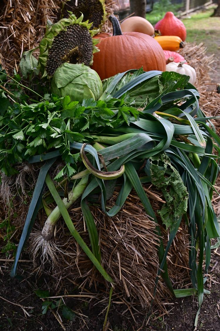 Pani Zofia nie tylko je uprawia – ona je celebruje. Każda dekoracja w ogrodzie była przemyślana: dynie poukładane na snopach słomy, ułożone w misach i koszach z traw i wrzosów. Byłam wzruszona, bo w tych aranżacjach było coś więcej niż estetyka – była dusza.