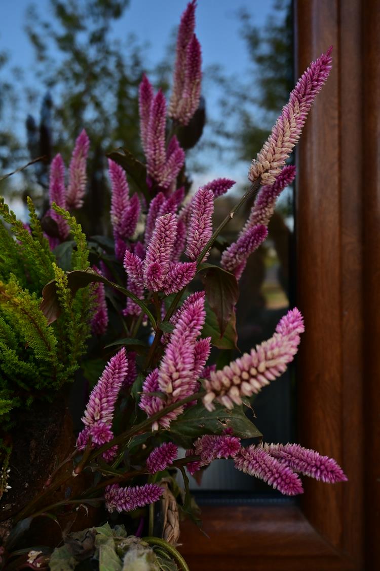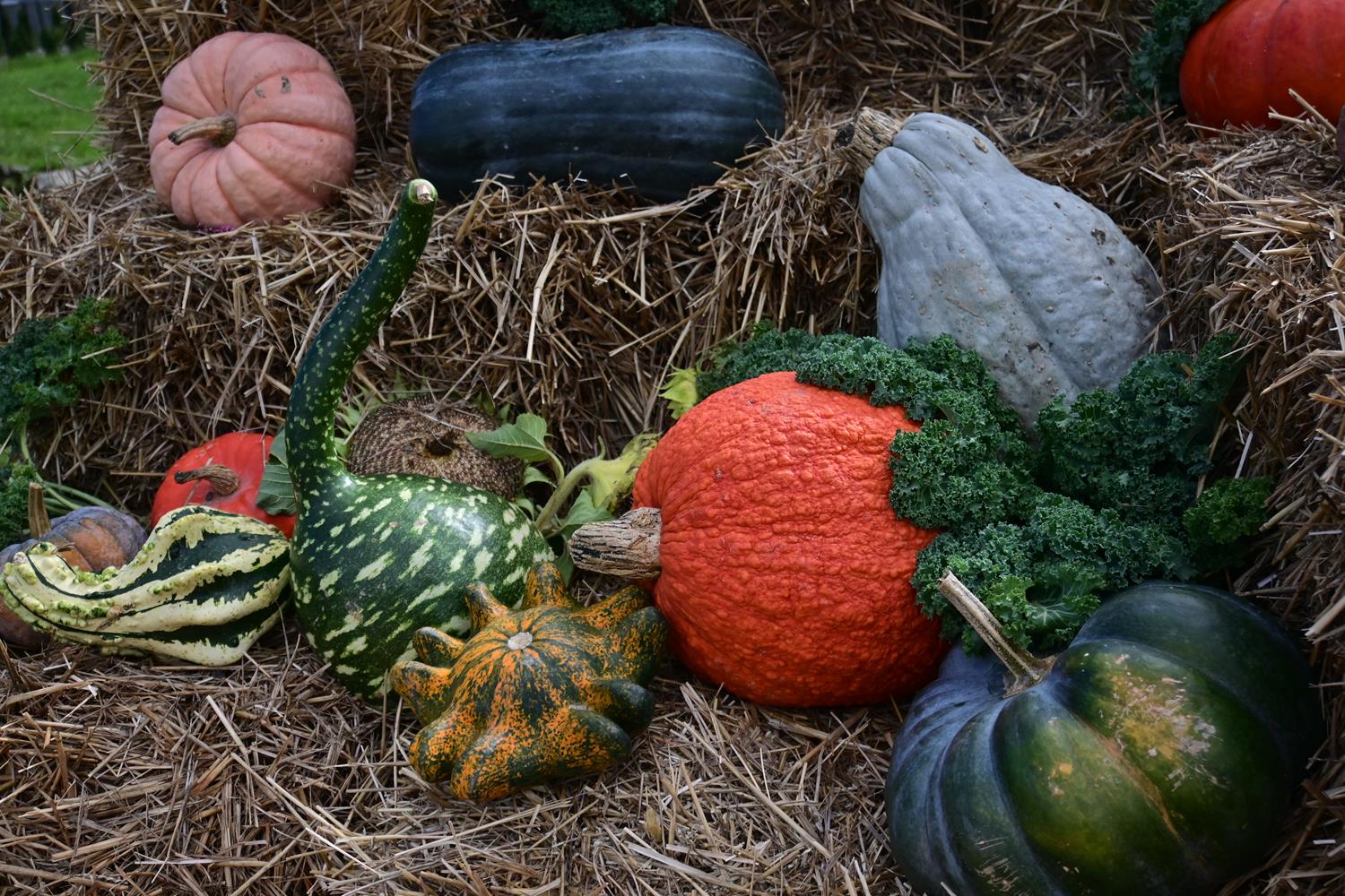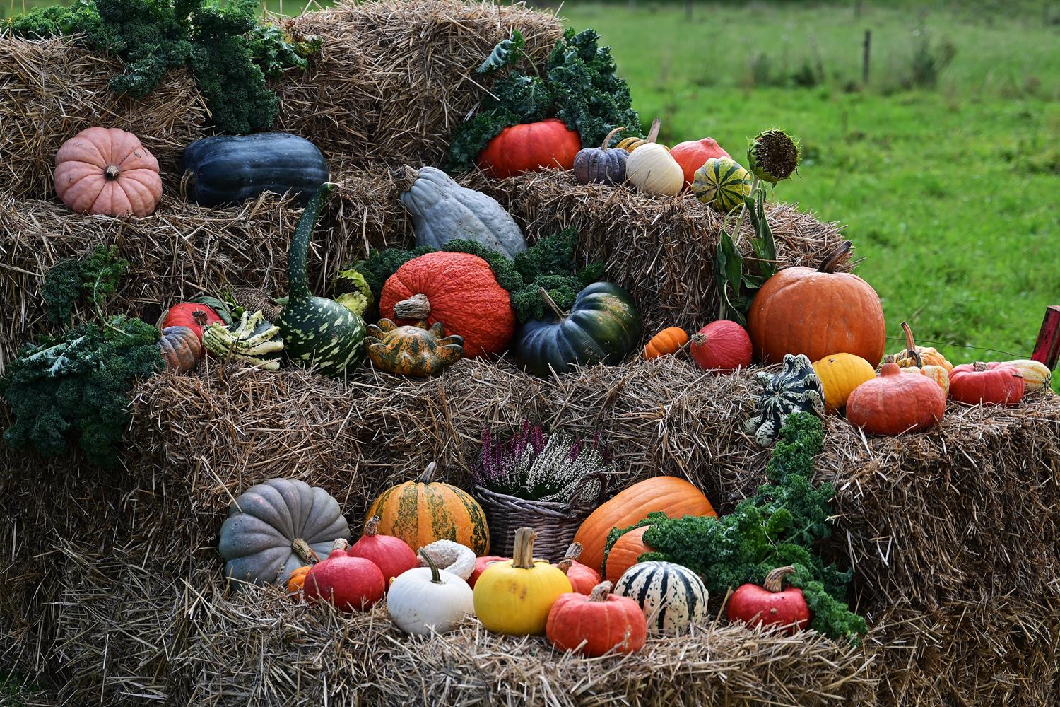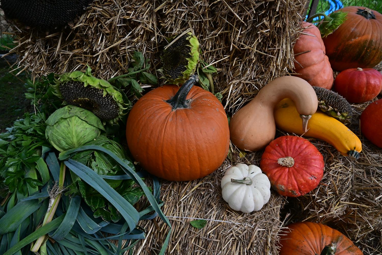 Pani Zofia nie tylko je uprawia – ona je celebruje. Każda dekoracja w ogrodzie była przemyślana: dynie poukładane na snopach słomy, ułożone w misach i koszach z traw i wrzosów. Byłam wzruszona, bo w tych aranżacjach było coś więcej niż estetyka – była dusza.