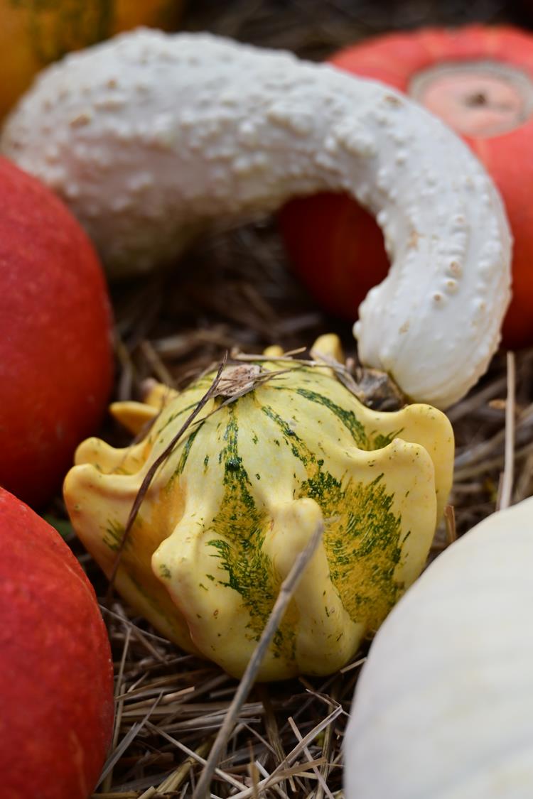 Zachwyciły mnie te zielone – niektóre intensywne jak mech, inne pastelowe, niemal oliwkowe. Obok pyszniły się klasyczne, ogniste pomarańcze, ale i one miały swoje odcienie – od głębokiej mandarynki po jasny bursztyn. A potem – niespodzianka – dynie żółte jak słońce, lśniące niemal jak metal. I te fioletowe… nie sądziłam, że taki kolor może przybrać dynia. Ale najwięcej emocji wzbudziła we mnie ta różowa – subtelna, kobieca, delikatna jak pudrowa róża. Wyglądała jak z innego świata, jakby natura chciała udowodnić, że nie ma granic, gdy chodzi o piękno.