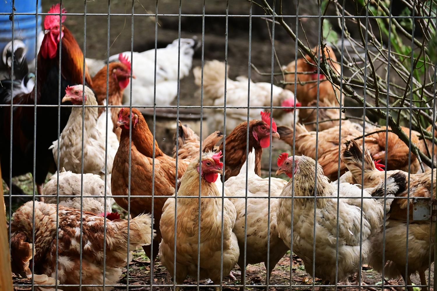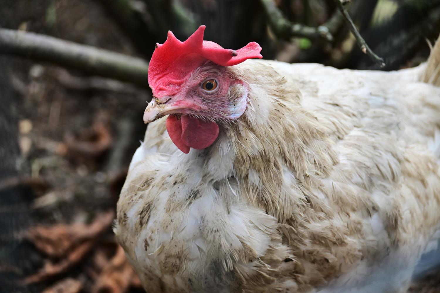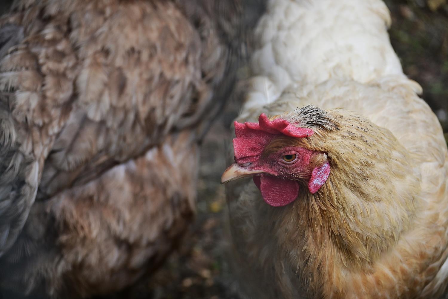 Zachwycona tym dyniowym teatrem, ruszyłam dalej, w głąb ogrodu. Ciszę przerywało gdakanie – i wtedy zobaczyłam je: stadko uroczych, ciekawskich kur, które nic sobie nie robiły z mojej obecności. Podeszłam bliżej, a one – jakby mnie znały od lat – przywitały mnie z zaciekawieniem. Ich upierzenie mieniło się w słońcu: od klasycznej bieli, przez rudawe łaty, aż po prawie czarne pióra z zielonym połyskiem. Niektóre gdakały w kurniku, inne dziobały trawę, a jedna z kur łypała na mnie ciekawie.