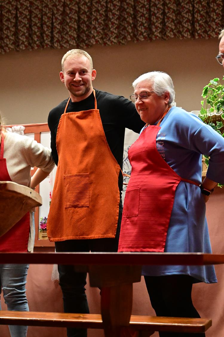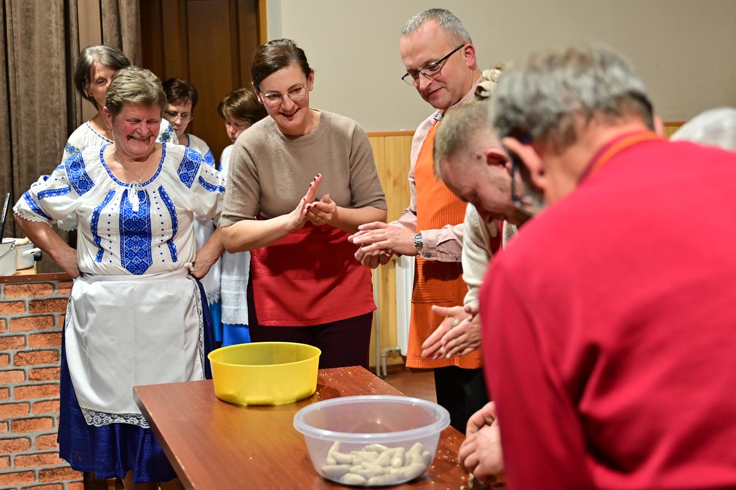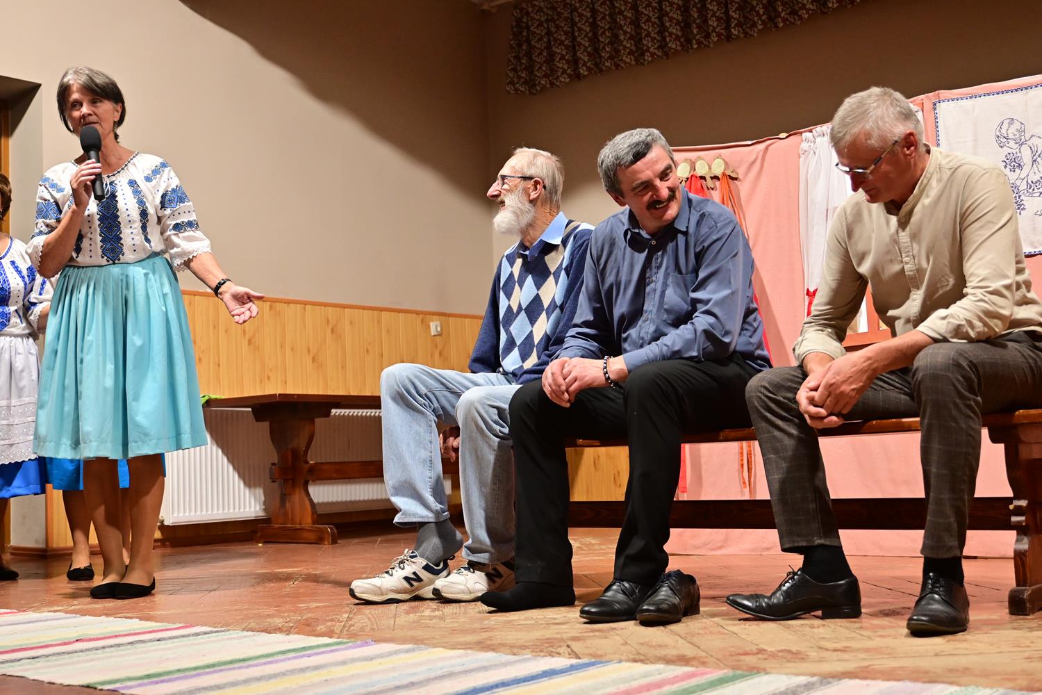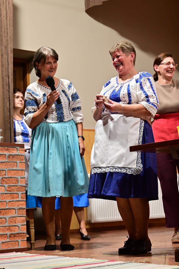 Maria Krzysztofek przybliżyła także historię KGW, któremu przewodniczy od 2019 roku. Opowiedziała o aktywnościach i sukcesach gospodyń – m.in. udziale w przeglądach kulinarnych, artystycznych oraz licznych akcjach charytatywnych, takich jak kiermasze ciast. Wspomniała również o wyjazdach na Dietve oraz o ostatnim sukcesie – I miejscu w przeglądzie artystycznym w Łopusznej za scenkę pt. „Sulki prze gynsi i nieudano starość”, którą panie zaprezentowały również podczas posiadów.