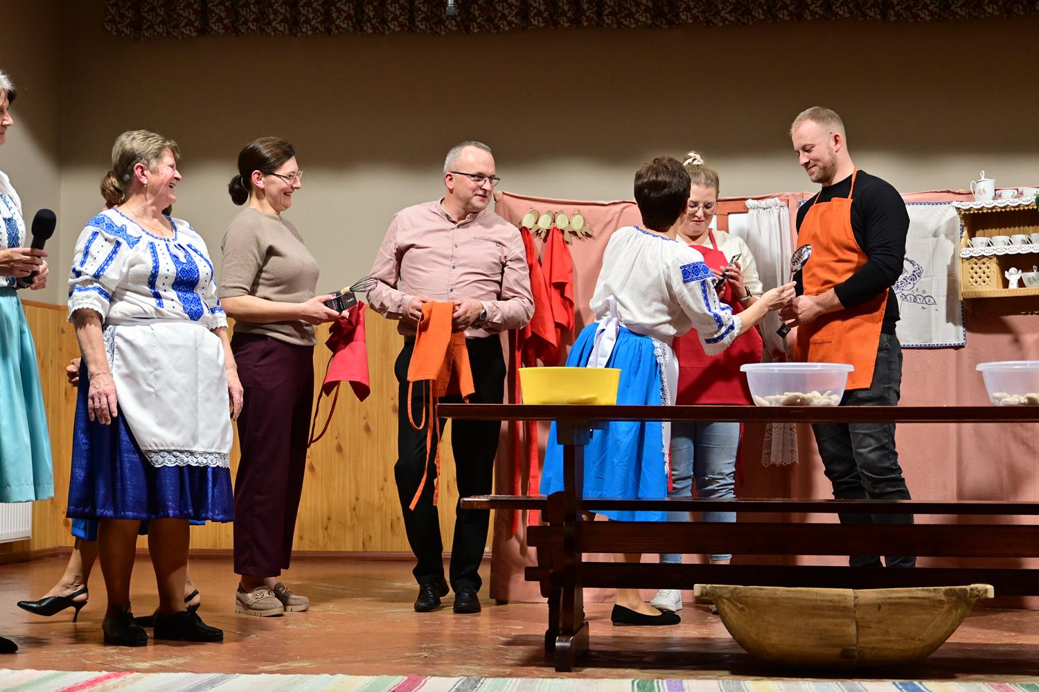 Drugi konkurs – skierowany do pań – to wyzwanie w obieraniu i jak najdrobniejszym siekaniu marchewki. Śmiechu było co niemiara! Trzecia konkurencja, tym razem dla panów, polegała na założeniu tradycyjnych onucek i przemaszerowaniu w nich przez scenę. Publiczność nagradzała uczestników gromkimi brawami.