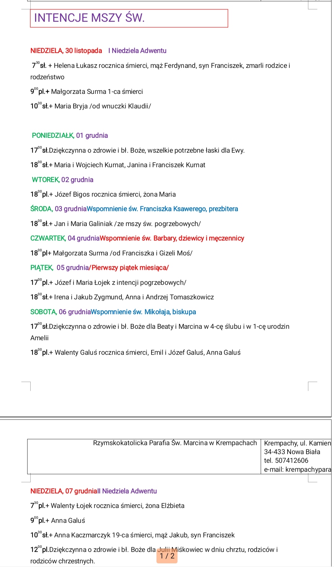 NIEDZIELA, 22 październik 29 Niedziela Zwykła /Uroczystość św. Jana Pawła II, papieża/ 730pl. + Maria Brońska w rocznicę śmierci 900pl. + Zofia Łukasz 1030sł. + Dominik Krzysztofek 32-ca śmierci, Maria i Wojciech Krzysztofek […]