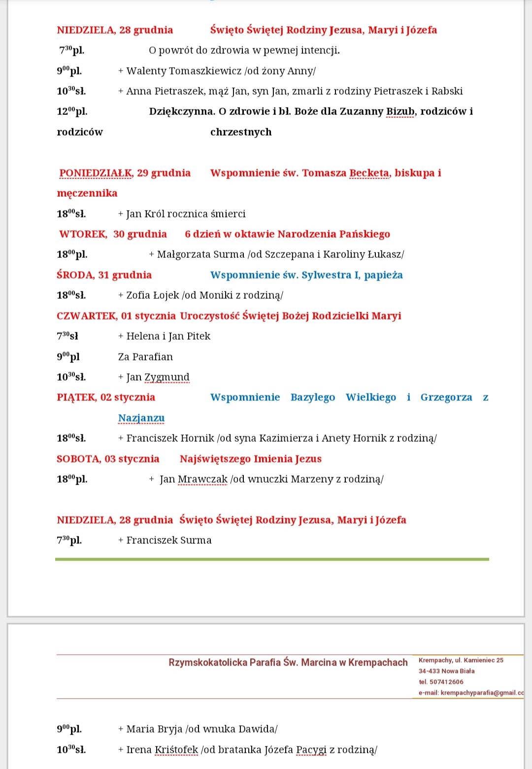 NIEDZIELA, 29 września 26 Niedziela Zwykła PONIEDZIAŁEK, 30 września – Wspomnienie św. Hieronima, prezbitera i doktora Kościoła WTOREK, 1 października Wspomnienie św. Teresy od Dzieciątka Jezus, dziewicy i doktora Kościoła ŚRODA, 2 października Wspomnienie Świętych […]
