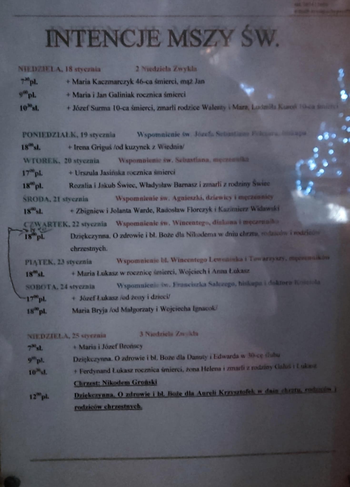 NIEDZIELA, 20 sierpnia 20 Niedziela Zwykła 730sł. + Anna i Andrzej Łapczyńscy w rocznicę śmierci 900pl. + Jan Surma /od Urszuli i Mieczysława Sobolak z rodziną/ 1030sł. Dziękczynna. O zdrowie i bł. […]