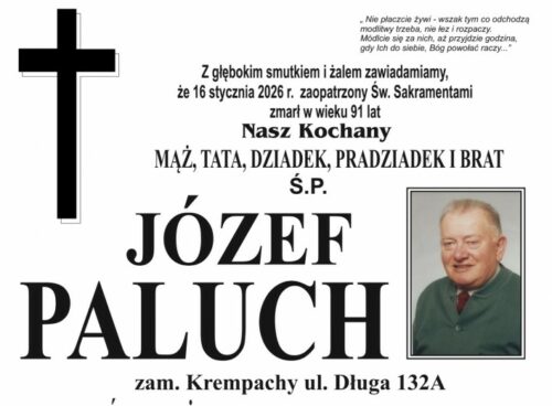 Ze smutkiem informujemy, że w piątek 16 stycznia zmarł w wieku 91 lat śp. Józef Paluch zamieszały na ul. Długiej.