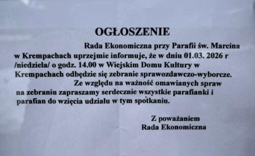 Rada Ekonomiczna przy Parafii św. Marcina uprzejmie informuje, że w przyszłą niedzielę tj. 8.12.2024 r., na wszystkich Mszach św. będzie zbierana składka od rodzin na potrzeby naszej wspólnoty parafialnej. Składkę prosimy składać na tacę zwyczajowo […]