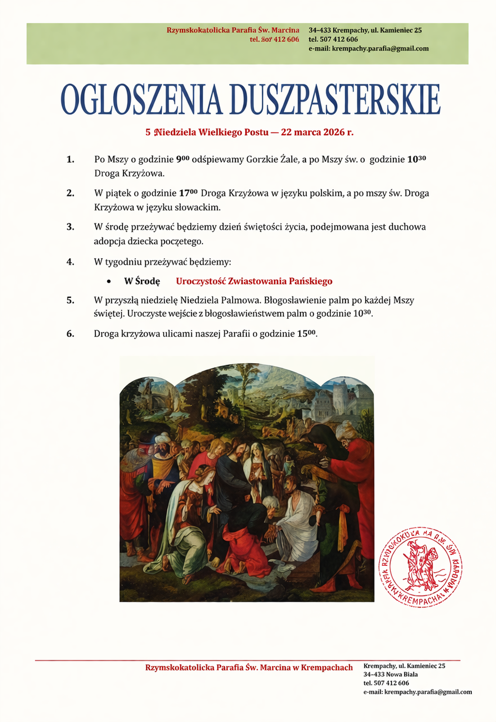 NIEDZIELA, 31 grudnia – Św. Sylwestra I, papieża 730sł. Za Parafian 900pl. + Franciszek Łukasz /od siostry Anny z mężem/ 1030sł. + Jan Król /od rodziny Nieszpory na zakończenie roku PONIEDZIAŁEK, 1 […]