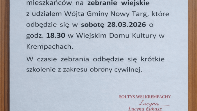 We wtorek 19 stycznia odbyło się robocze spotkanie sołtysów z władzami Gminy Nowy Targ. W pierwszej części obrad wziął udział Stanisław Nowak, dyrektor firmy FCC Podhale, która w bieżącym roku będzie realizować odbiór odpadów komunalnych […]