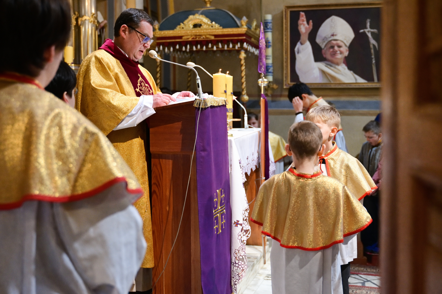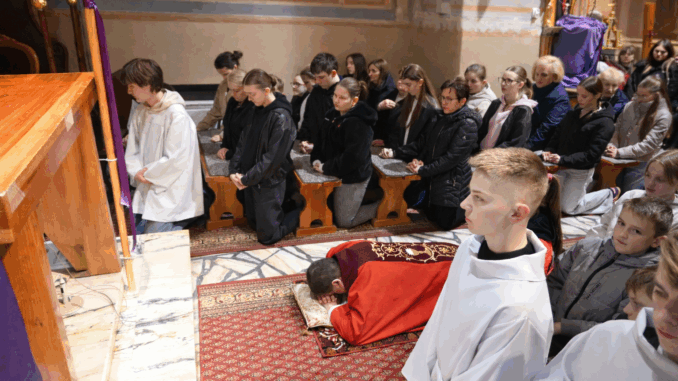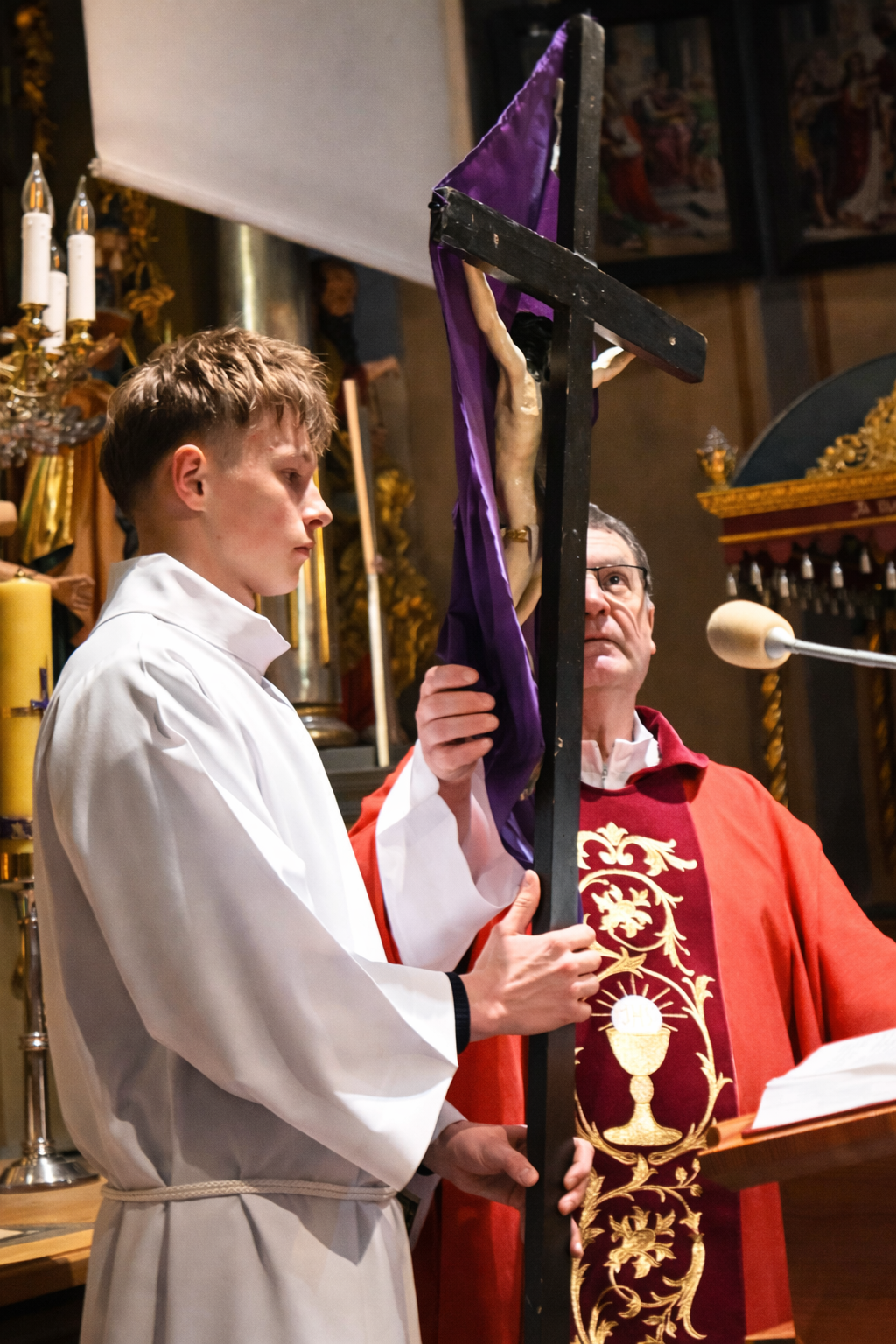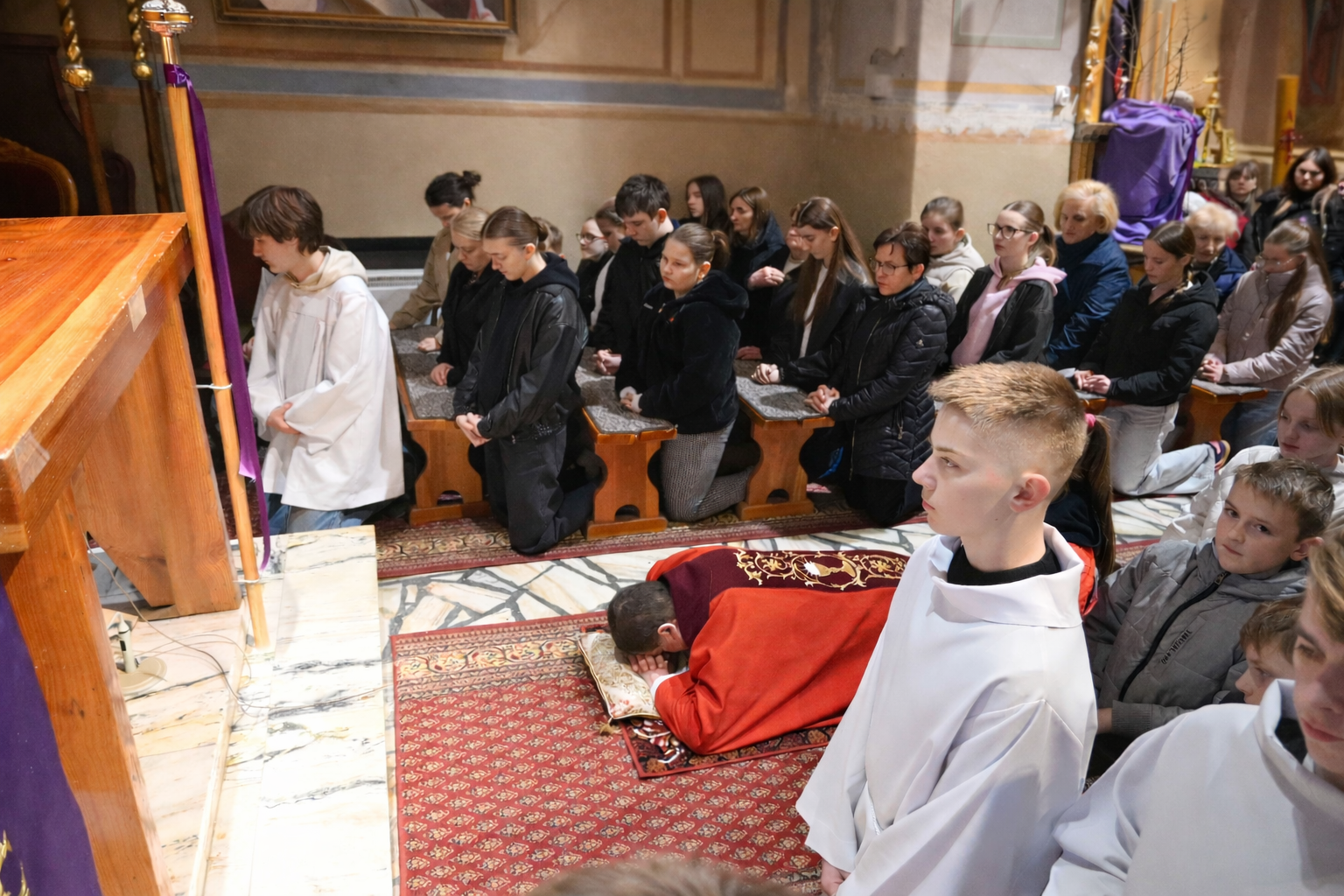 Z kolei Wielki Piątek w sposób szczególny zawsze naznaczony jest ciszą, która uderza już od pierwszych chwil. Bo gdy służba liturgiczna weszła do kościoła, nie towarzyszył jej ani śpiew, ani dźwięk organów – tylko przejmująca, głęboka cisza. Ministranci i lektorzy uklękli na oba kolana, a ksiądz proboszcz padł na twarz przed ołtarzem.