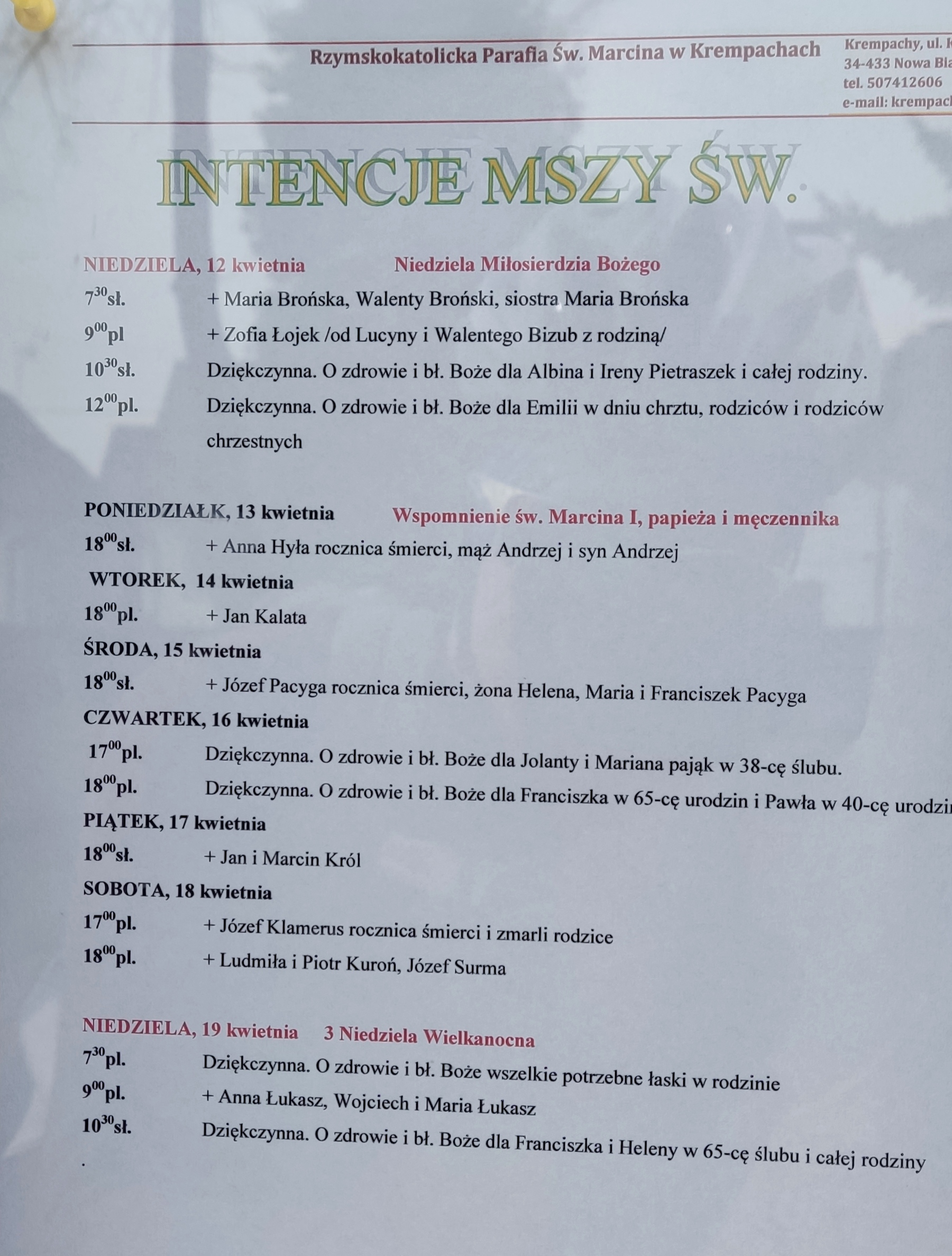 NIEDZIELA, 12 stycznia Niedziela Chrztu Pańskiego PONIEDZIAŁEK, 13 stycznia – Wspomnienie św. Hilarego, biskupa i doktora Kościoła WTOREK, 14 stycznia ŚRODA, 15 stycznia CZWARTEK, 16 stycznia PIĄTEK, 17 stycznia SOBOTA, 18 stycznia NIEDZIELA, 19 stycznia […]